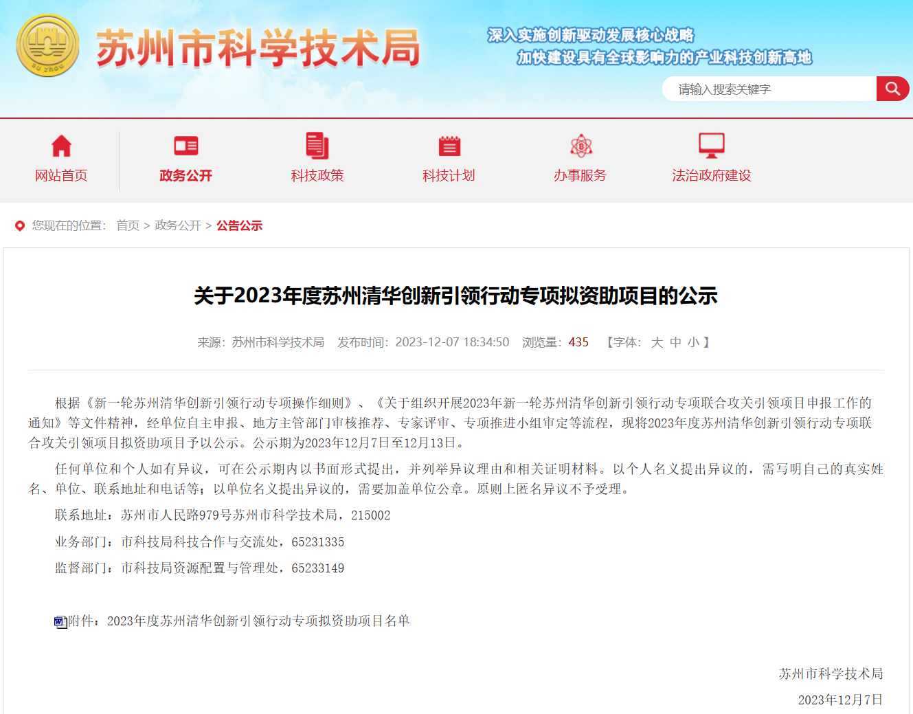 近日,蘇州市科學(xué)技術(shù)局公示了“2023年度蘇州清華創(chuàng)新引領(lǐng)行動專項擬資助項目”名單,我司申報的“水污染溯源技術(shù)和產(chǎn)品升級研發(fā)”項目成功入選。
