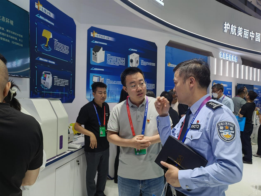 在此次警博會的環(huán)食藥偵查裝備展區(qū),蘇州國溯科技有限公司攜自主研發(fā)的水污染預(yù)警溯源儀亮相,展會現(xiàn)場,國溯科技工作人員為參展人員詳細講解了水質(zhì)指紋溯源技術(shù)的原理及在環(huán)境執(zhí)法領(lǐng)域的創(chuàng)新應(yīng)用,展示了該技術(shù)如何助力公安機關(guān)突破危廢傾倒溯源難、企業(yè)偷排取證難等執(zhí)法痛點。