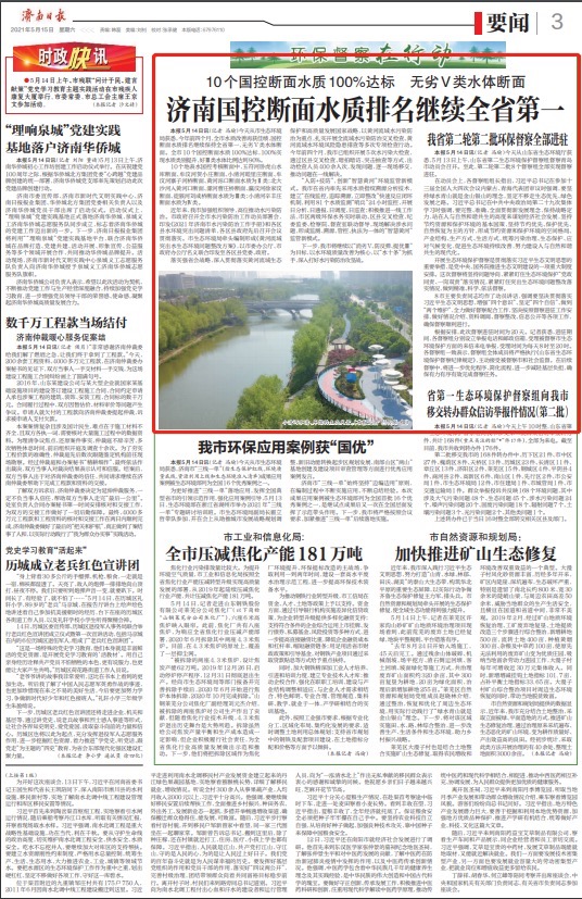 5月14日,濟(jì)南日?qǐng)?bào)記者從市生態(tài)環(huán)境局獲悉,今年前四個(gè)月,濟(jì)南水質(zhì)改善再獲佳績,國控?cái)嗝嫠|(zhì)排名繼續(xù)保持全省第一,無劣五類水體斷面。全市10個(gè)國控?cái)嗝嫠|(zhì)100%達(dá)標(biāo),100%實(shí)現(xiàn)水質(zhì)類別提升,好三水體比例達(dá)到90%。